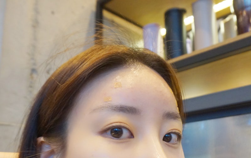 마취크림 바르기 전, 필러 바르기 전 사진을 먼저 찍어봤습니다. 제 이마는 별로 납작하지도 않고, 예쁘고 울퉁불퉁한 이마도 아니어서 항상 이마가 예쁜 분들이 부러웠어요! 저 사람들처럼 예쁜 이마를 갖고 싶다는 마음으로 마취크림을 바르고 한참을 기다렸습니다. 나는 그것을 보았다!