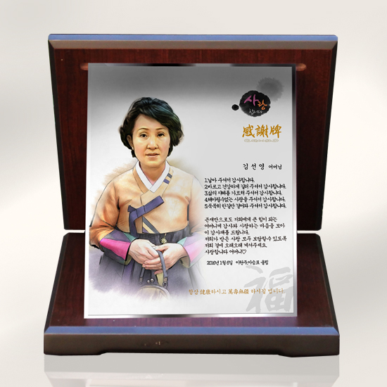 부모님은 물론, 회사나 사업장에서도 퇴직패나 기념패로 활용하기 좋은 제품입니다. 덕분에 부모님께 돈으로 살 수 없는 값진 기쁨을 드릴 수 있어서 행복합니다.