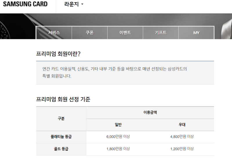 상·하반기 사용금액을 합산해 골드/플래티넘/티타늄 3등급으로 나누어 혜택을 제공하던 프리미엄 리워드 서비스가 종료되며, 2024년 1월부터 VIP 회원을 선발한다. 1년간 지출한 총 금액을 기준으로 합니다. 그것은로 바뀌었다