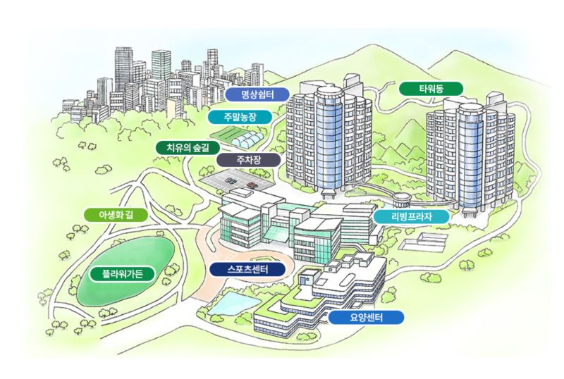 단지는 일반 오피스텔과 노인복지주택으로 구성된다. 전체 1,387가구 중 노인복지주택은 1단지 101-2동, 2단지 201-2동 등 4개동으로 현재는 2단지만 임대 중인 것으로 전해진다.