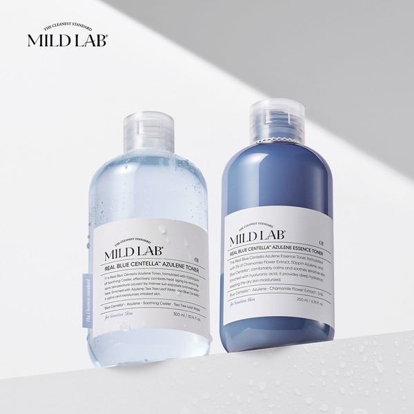 제가 요즘 많이 사용하고 있는 것은 민감한 피부를 가진 현대인도 편안하게 사용할 수 있는 저자극 클린뷰티 브랜드 마일드랩에서 출시한 신제품 리얼블루 센텔라 아줄렌 수딩 토너입니다. 새롭게 출시된 토너는 2가지 타입이 있는데, 피부 타입에 따라 제형과 성분에 차이가 있다. 공통점은 스킨케어 첫 단계에서 복합성, 민감성, 지성 피부에 좋다는 점이다.