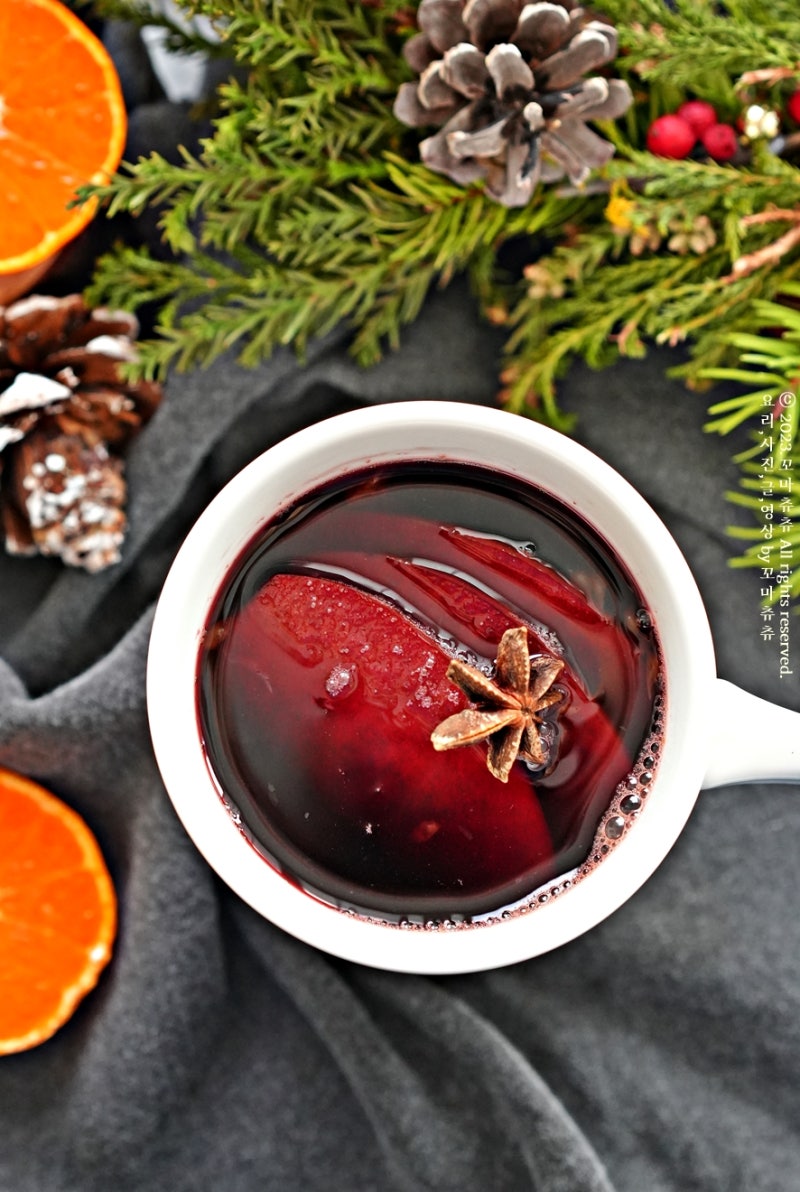 와인 빈슈 만들기는 샹그리아와 함께 연말 홈파티의 인기 메뉴인 것 같은데, 빈쇼 만들기 키트 없이도 집에서 쉽게 만들 수 있는 레드와인 요리 중 하나이다. 무알콜 뱅쇼 만드는 법 와인을 뜻하는 프랑스어 뱅(vin)과 따뜻하다는 뜻의 쇼(chaud)라는 뜻이 합쳐진 말이다. 프랑스에서는 추운 겨울날 감기 예방을 위해 자주 마시는 음료로 알려져 있습니다. 향신료와 과일을 넣어 조리한 레드 와인 요리이기도 합니다. 한국에서는 쌍화탕이나 허브차를 마시지만, 프랑스에서는 와인을 만드는 일이 있습니다. 값비싼 레드와인이 필요하지 않고, 저렴한 와인을 구입해 오렌지, 레몬, 귤 등 강한 시트러스 향을 사용하면 더욱 상큼하게 즐길 수 있다. 무알콜 빈쇼트를 만들려면 알코올을 모두 제거하기 위해 최소 30분 이상 조리해야 합니다. 의심스러운 경우 또 다른 옵션은 무알콜 스파클링 와인을 사용하는 것입니다. 편의점에서 8000원 정도 하는 저렴한 레드와인을 사서 집에 있는 과일을 넣고 30분 이상 끓였더니 알코올이 다 빠져서 걱정 없이 마실 수 있었어요. 그뿐만 아니라 스타 아니스도 있습니다. 정향, 계피 등 향신료를 더하는데 스타아니스도 마찬가지인데 정향은 별로 내 취향이 아니어서 빼고 뱅쇼를 만들었다. 정향의 향을 좋아하시는 분들은 몇 개만 추가해 보세요. 역시 사과가 많아서 썰어서 넉넉하게 넣었어요. 귤도 듬뿍 넣어서 방쇼 만들기 방법도 완성했어요. 하하~
