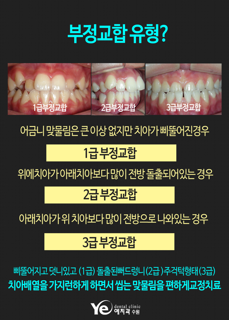 3급 부정교합은 치아가 뒤로 물린 부정교합입니다. 아래턱은 크고 위턱은 작은 경우가 대부분입니다. 3급 부정교합은 앞니가 제 기능을 하지 못하기 때문에 다양한 문제를 일으킬 수 있습니다. 무표정으로 나오면 무뚝뚝해 보일 수 있으니 수정하는 것이 좋다.