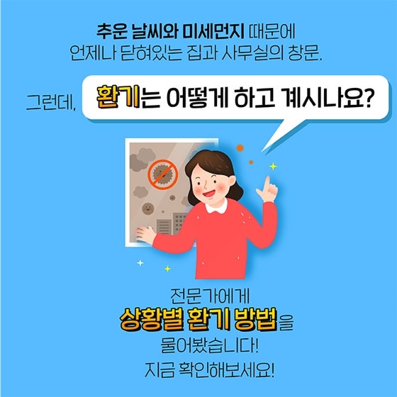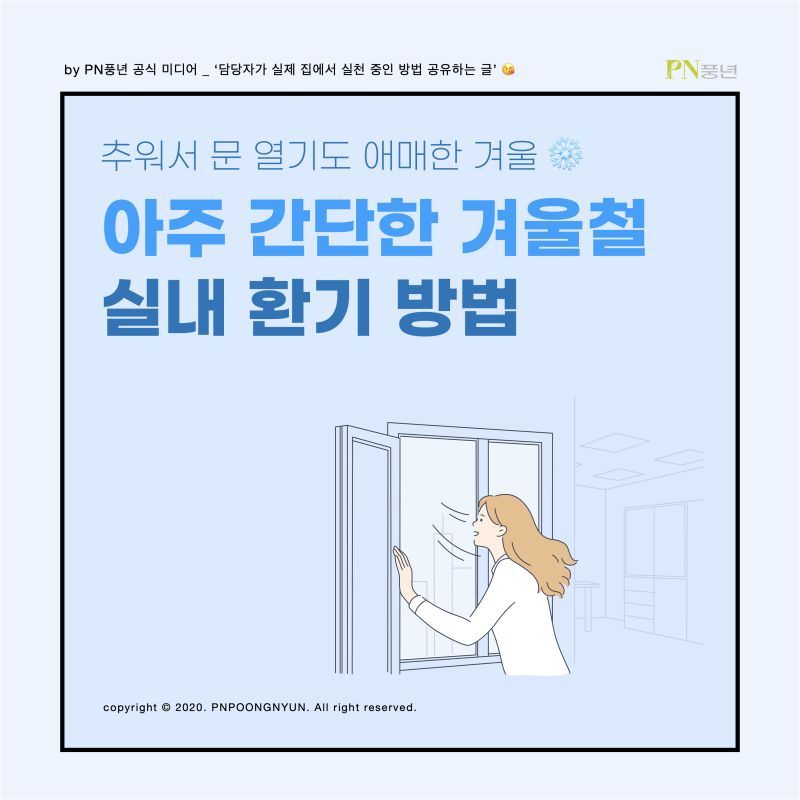 안녕하세요 바닐라베리입니다. 추운 때와 달리 겨울에는 날씨도 많이 춥고 찬바람도 강해서 집 안 환기가 좀 힘들더라구요. 그럼에도 불구하고 집 안의 신선한 공기 질을 유지해야 하므로 자주 또는 최소한으로 관리해야 합니다. 오늘은 추운 겨울 환기 방법과 난방비를 절약하면서 환기하는 꿀팁까지 알아볼게요!