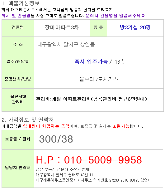 함께 알면 좋은 정보글23년 6월 대구시 달성군 화원읍 아파트 매매 전세 월세 거래가격화원아파트 23년6월거래 국토교통부 안전한 거래를 위해 힘쓰는 화원제일부동산 오늘은 대구광역시 달성군 …blog.naver.com 매매 전세 월세매물접수화원제일부동산 궁금할 땐 네이버 톡톡하세요!자료출처 : 국토교통부#화원부동산 #화원아파트매매 #화원읍아파트월세 #화원역아파트전세 #화원공인중개사