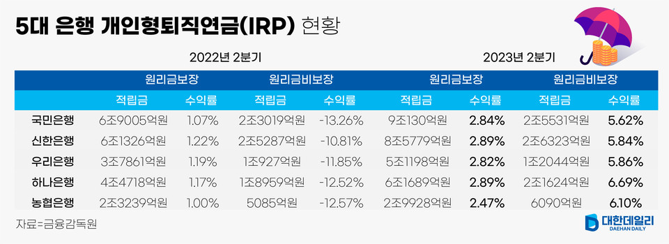 개인형퇴직연금 IRP(Individual Retirement Pension) 개인이 투자금 지급과 자산관리를 책임지는 연금제도입니다. 즉, 연금은 받을 때까지 계속 보유할 수 있고, 노후를 위한 투자계좌로도 연간 최대 1800만원까지 납입할 수 있으며, 위험자산은 최대 40%까지만 투자할 수 있어 비교적 안정적인 투자가 가능하다. 또한 퇴직연금 상품이기 때문에 비용부담은 일반펀드에 비해 가볍지만 IRP 운용수수료는 은행, 보험사, 증권사별로 독립적으로 존재하므로 비교 및 가입을 권장합니다!